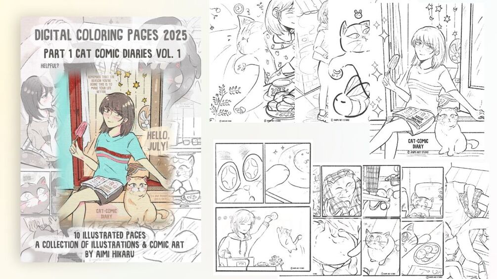 Part 1 Volume 1 Digital Coloring Pages | A Collection of Illustrations & Comic Art | Anime Art Style | Cozy Coloring Sheets | Aaimi Art Studio