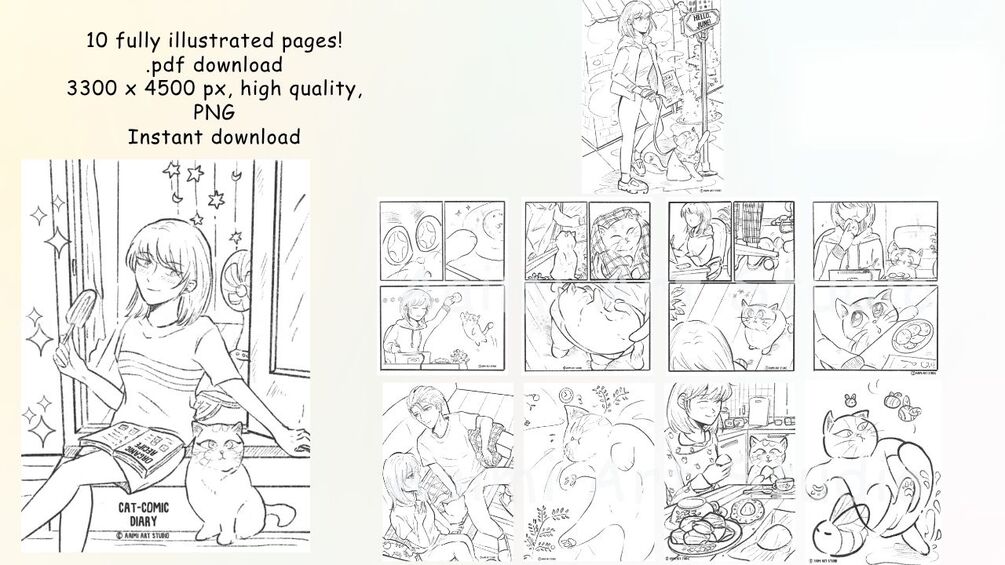 Anime Coloring Pages: Cat Comic Diaries, Cozy Illustrations (PDF Download)