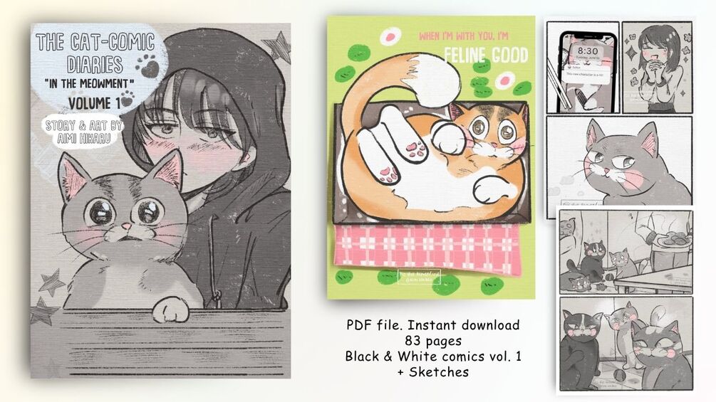 Volume 1 Digital Comic PDF | Cat Comic Diaries | Indie Webcomic | Digital Art | Manga | Aaimi Art Studio
