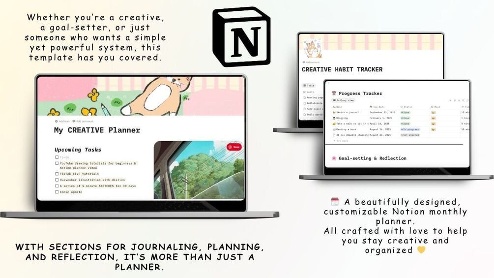 🗓️ Introducing My First Notion Creative Monthly Planner — a cozy, customizable digital space crafted with love to help you stay grounded, organized, and creatively inspired 💛